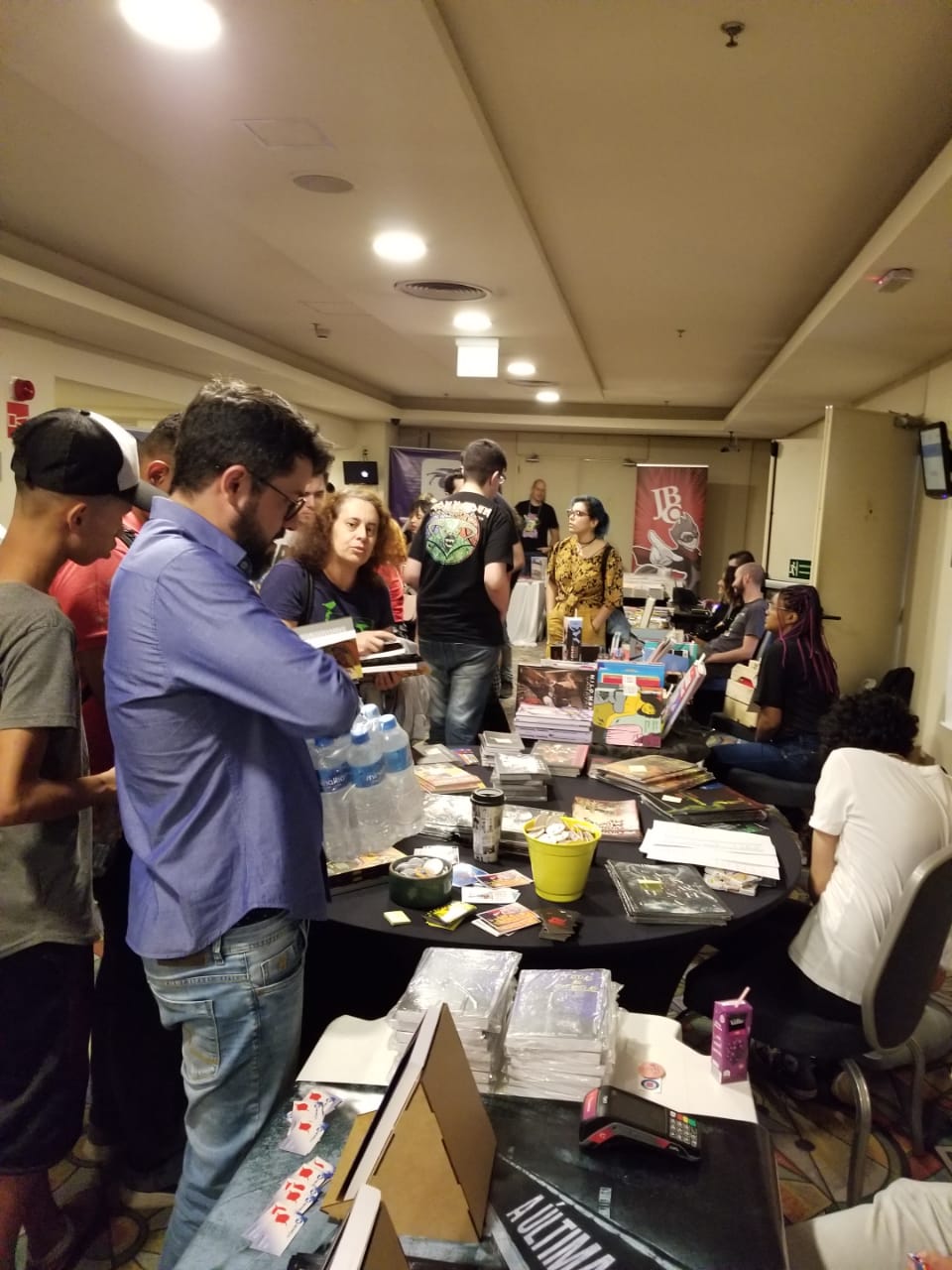 Paulinha, companheira também na cobertura no primeiro Fuzuê, achou o espaço apertado para a sala de palestras, mas destacou o encontro com artistas legais e fofos. “Trabalhos incríveis de quadrinistas e ilustradores, daria para passar os dois dias inteiros passando de mesa em mesa. Mas acho que seria menos sufocante se fosse fora desse ambiente hoteleiro”, opinou.