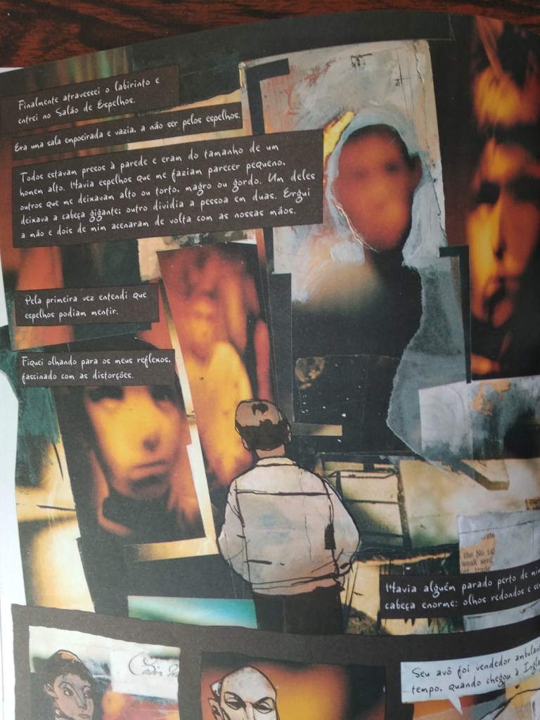 Muitas outras cenas e acontecimentos vão ilustrando essa fase de crescimento e confusão como metáforas no mundo físico do que se passa no interior do personagem em sua busca por descobrir quem é: o caça-níquel que o avô tem num conjunto de lojas falidas, que se organizam em corredores labirínticos, onde também há uma atração que é, justamente, um labirinto de espelhos.